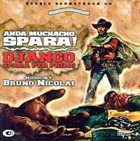 Anda muchacha spara (Dead Men Ride) is a western soundtrack from 1971 which most definitely belongs to the Morricone-esque school of western scoring, with plentiful use of choir solo trumpet, piano, organ and racing chase music. Django spara primo (Django Shoots First) from 1966 is more Americanised in style, displaying hardly any signs or musical trademarks that are normally associated with the spaghetti western, save for the central theme performed on solo trumpet. The remainder of the work is quite low key and fully orchestral, rather than utilising theelectric guitar as in other western scores that Nicolai worked on during this period.